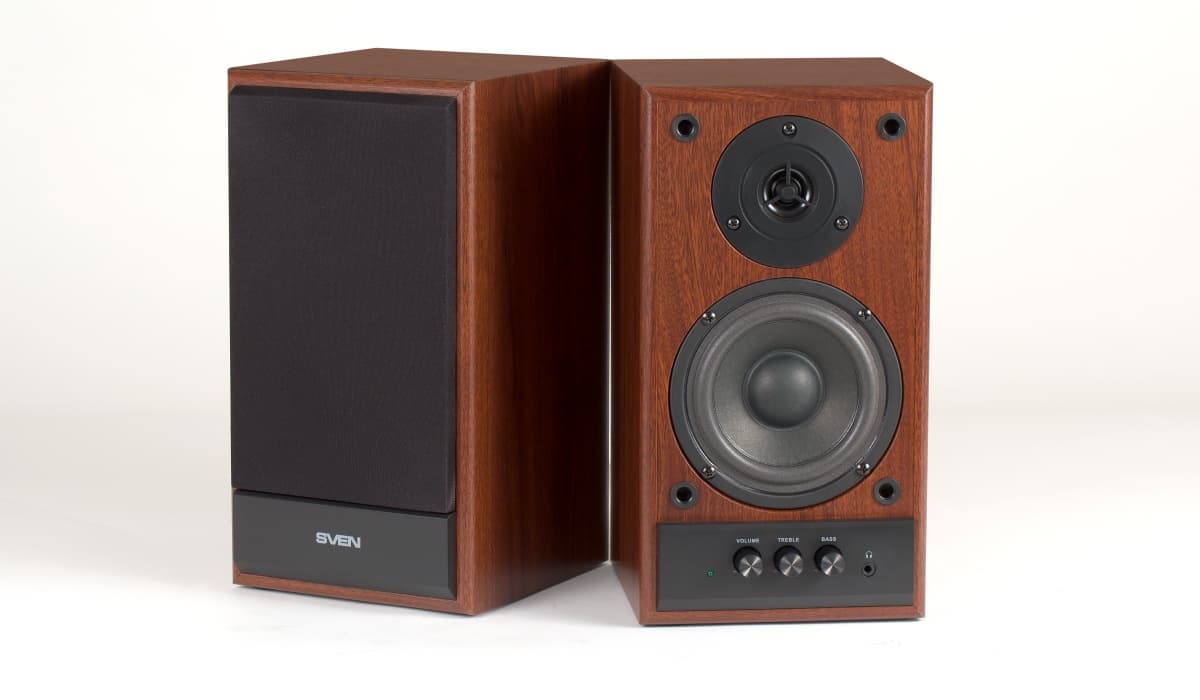 В целом звучание колонок Sven находится на среднем уровне. Как и во многих предыдущих случаях, из-за использования дешевых динамиков звучание получилось соответствующим. В данных колонках звучание явно акцентировано в верхней области средних частот. Вместе с характерными искажениями на высоких частотах, тембр звука у данной модели очень специфический. Посредством имеющихся регуляторов тембра эту особенность исправить не представляется возможным, оптимальным вариантом является уменьшение высоких практически до минимального уровня и прибавление низких. Но даже в этих условиях звучание колонок остается своеобразным. Насыщенность звучания низкими частотами достаточная. Запас по регулировке имеется.