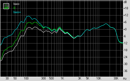 Графики АЧХ колонки Sven Stream R, измеренные при разных положениях регулятора НЧ