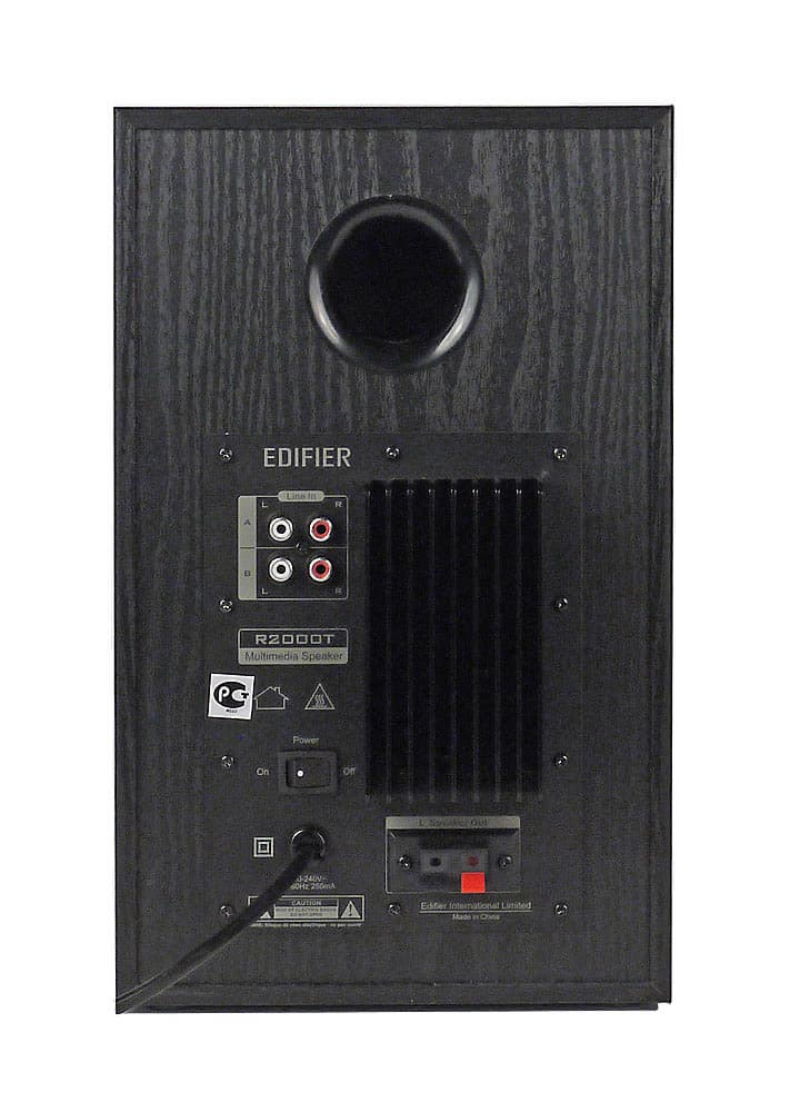 Во-вторых, выход фазоинвертора переехал на заднюю стенку. На сайте edifier.ru это описывают как полезное новшество, связанное с тем, что «паразитный сигнал задней части диффузора динамика НЧ, который с произвольной задержкой мог бы сложиться с полезным сигналом и привести к искажениям», однако нам представляется, что дело гораздо проще: размер корпуса уменьшился по сравнению со старшими моделями, и на фронтальной панели осталось не так уж много места для сколь-нибудь эстетичного размещения выхода трубы с внутренним диаметром 40 мм. Что же касается паразитного сигнала, то соображения о его возможном сложении с полезным почему-то не возникали в старших моделях…