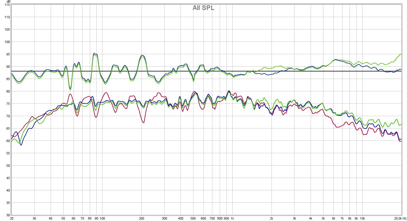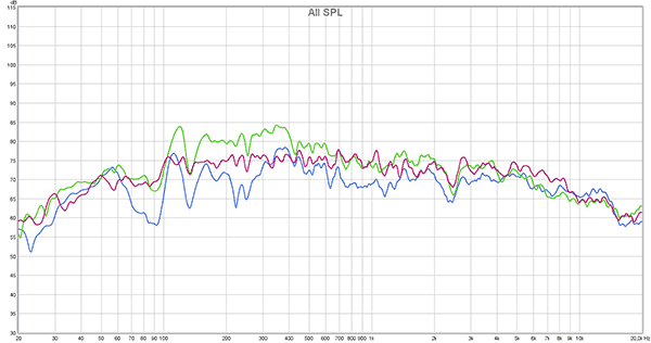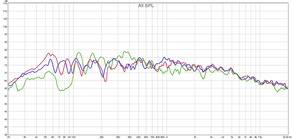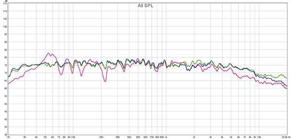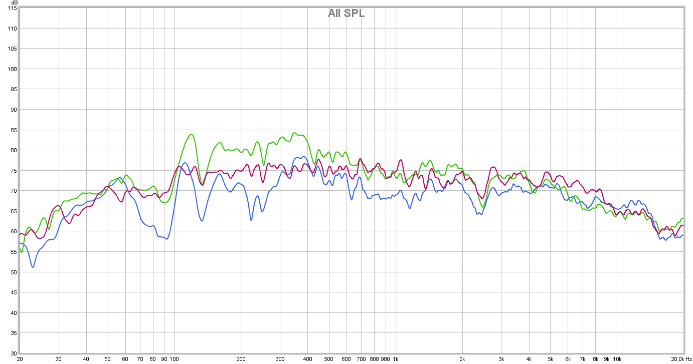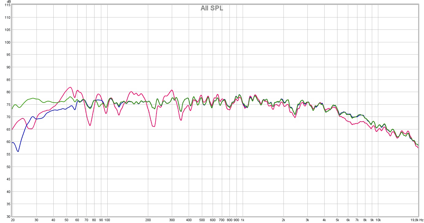 Вначале выполнялись замеры каждой АС в точке прослушивания, а также комбинации различных АС при совместной работе. Для каждой комбинации выполнялись по два замера: с выключенной системой калибровки, т. е. исходная характеристика, а также со включенной обработкой звука встроенной системой калибровки, что позволяет увидеть результат действия коррекции в точке прослушивания. Каждая система калибровалась несколько раз для получения лучшего результата в точке прослушивания.