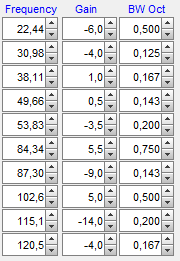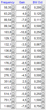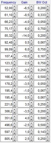 - Частота 153 Гц, усиление −6,5 дБ, добротность 0,16