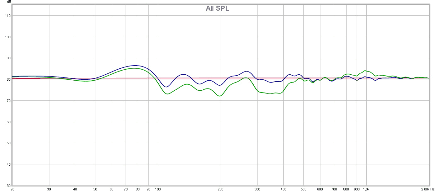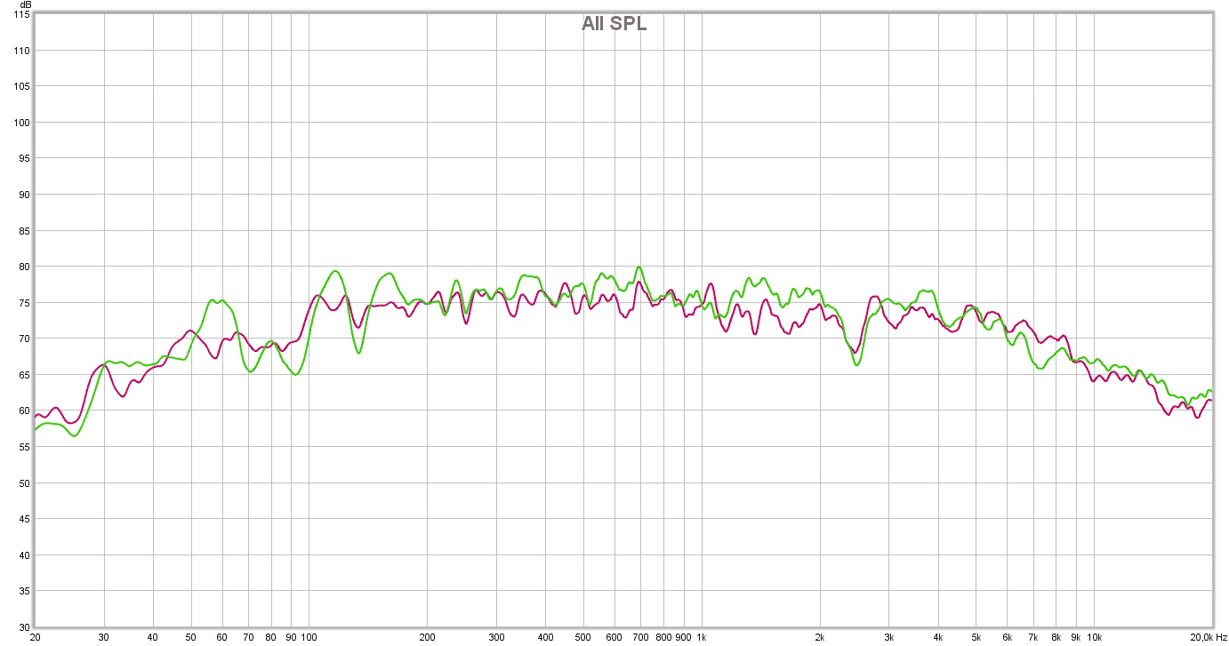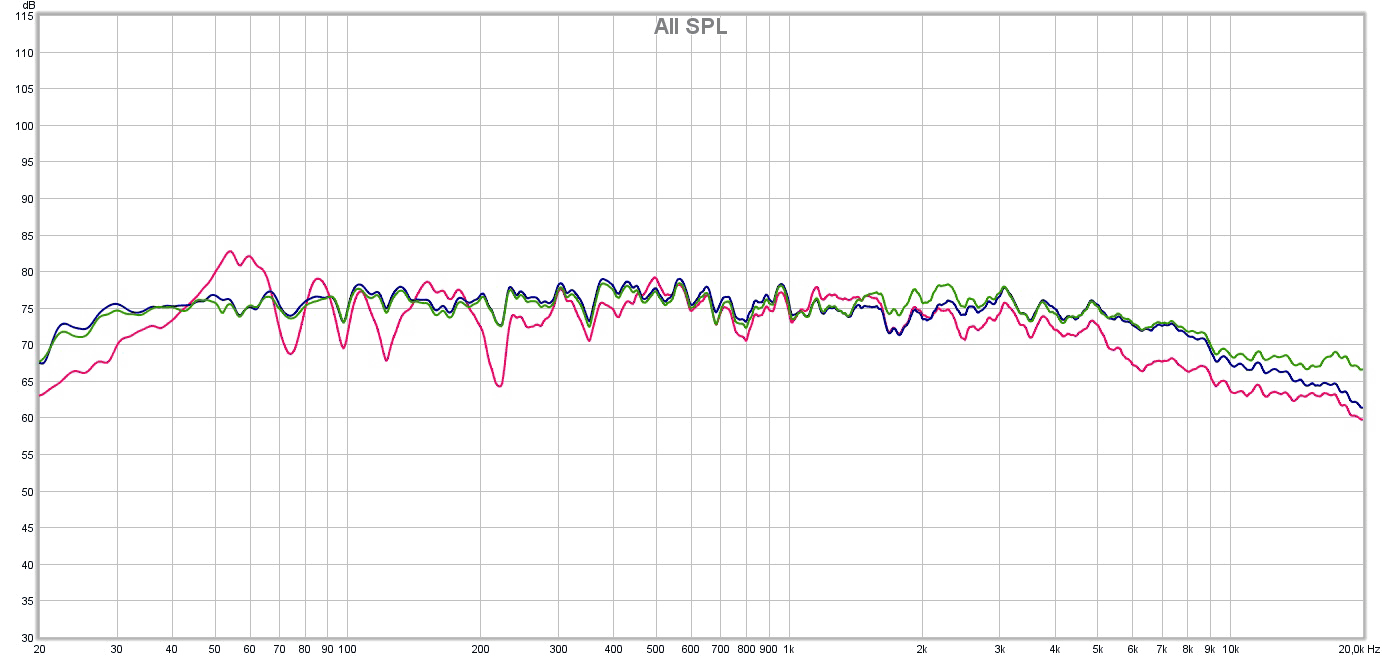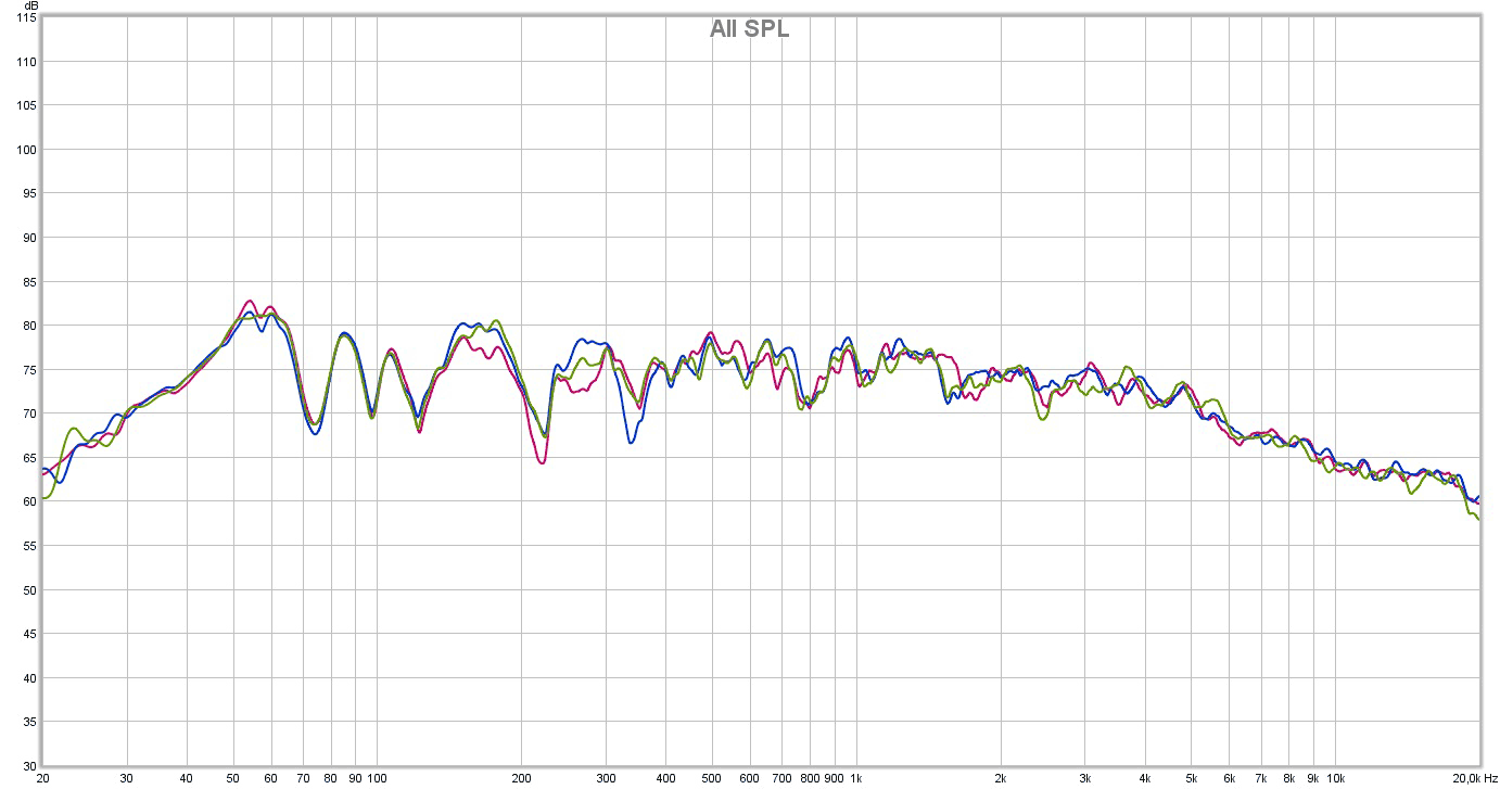 Здесь мы видим, что для каждой отдельной АС график АЧХ в области до 1 кГц стал ровнее, и остались только провалы, которые не стоит вытягивать за счет изменения амплитуды сигнала.