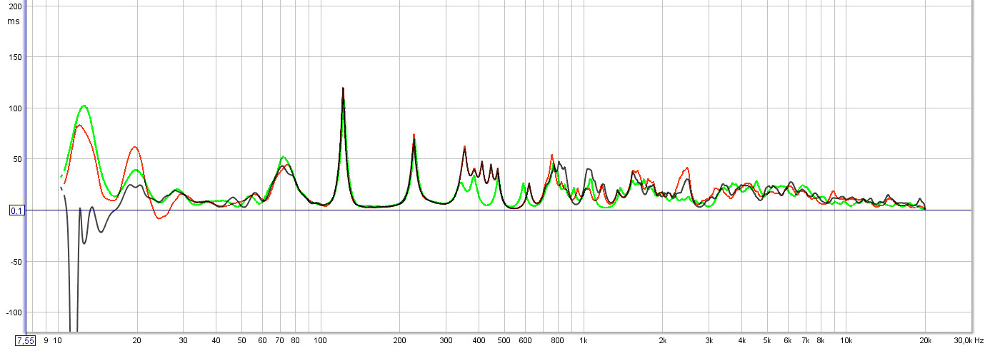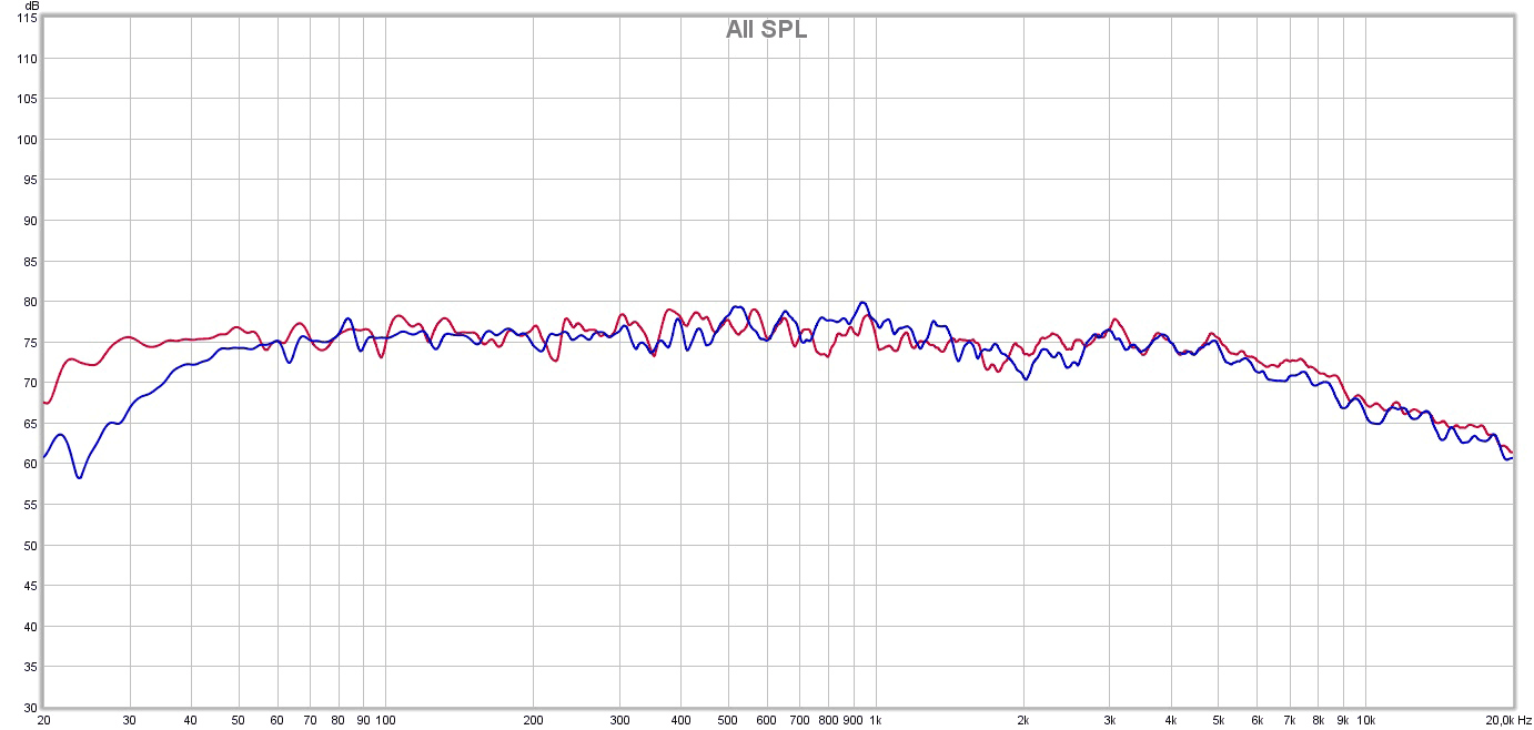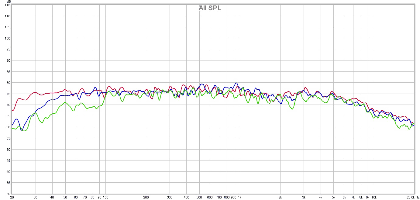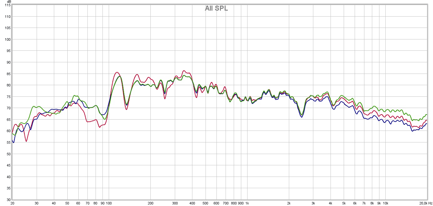 Здесь мы видим, что для каждой отдельной АС график АЧХ в области до 1 кГц стал ровнее, и остались только провалы, которые не стоит вытягивать за счет изменения амплитуды сигнала.