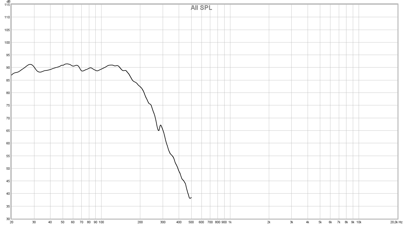 В диапазоне до 67 Гц график АЧХ превращается практически в прямую линию, а дальше до 120 Гц отклонения не превышают 3 дБ. В дальнейшем лучше установить частоту раздела 60 или 80 Гц.