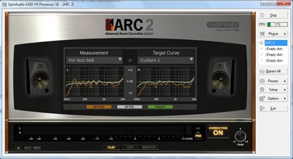 Программный комплекс ARC2 можно рассматривать как некий специфический эквалайзер, где пользователь задает не кривую правки, а сразу же требуемую кривую АЧХ в точке прослушивания, и система генерирует необходимый фильтр для обеспечения заданного значения по данным предварительного замера с микрофона на требуемой площади прослушивания.