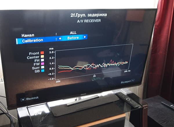 В современных ресиверах внутри установлены достаточно производительные процессоры, которые с помощью замера отклика каждой АС в точке прослушивания могут в автоматическом режиме настроить коррекцию звука как по амплитуде, так и по фазе, что должно привести к минимальным отклонениям на графике АЧХ и синфазной работе разных АС.