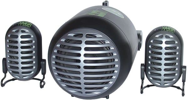 В целом звучание набора можно охарактеризовать как неплохое. Хотя в звучании сателлитов и прослушивается характерный пластмассовый оттенок, это не выпирает на передний план, а просто придает звуку своеобразную тембральную окраску. В звучании колоночек наблюдается отсутствие полноценных средних частот — слишком уж малы динамики сателлитов. Хотя, благодаря двойным динамикам, колоночки способны создать неплохую стереопанораму на расстоянии метра друг от друга (или чуть менее).