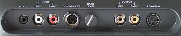 На задней стороне сабвуфера расположены регулятор уровня громкости отдельно саба, аналоговый вход и два выхода для подключения сателлитов (Right, Left).