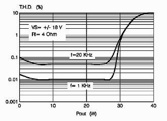 Как видно из графиков зависимости ТHD от мощности, характеристики обоих видов микросхем очень хорошие. При низком значении THD в обоих случаях запаса по мощности хватает с лихвой.