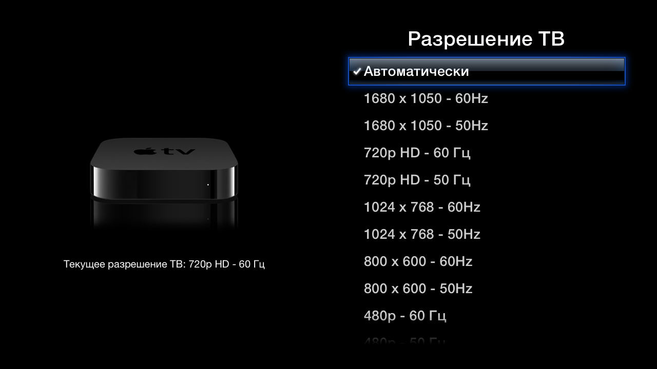 В частности, использованные для проверки собственные ролики, смонтированные в iMovie и закодированные во встроенном шаблоне «1080p», имеют профиль H.264 Main@4.1 и битрейт до 20 Мбит/с и воспроизводятся устройством без каких-либо проблем не только по кабелю, но и по Wi-Fi. Так что в целом, если вы привыкли к iTunes или пользуетесь Mac OS, то никаких сложностей c совместимостью Apple TV вы не встретите.
