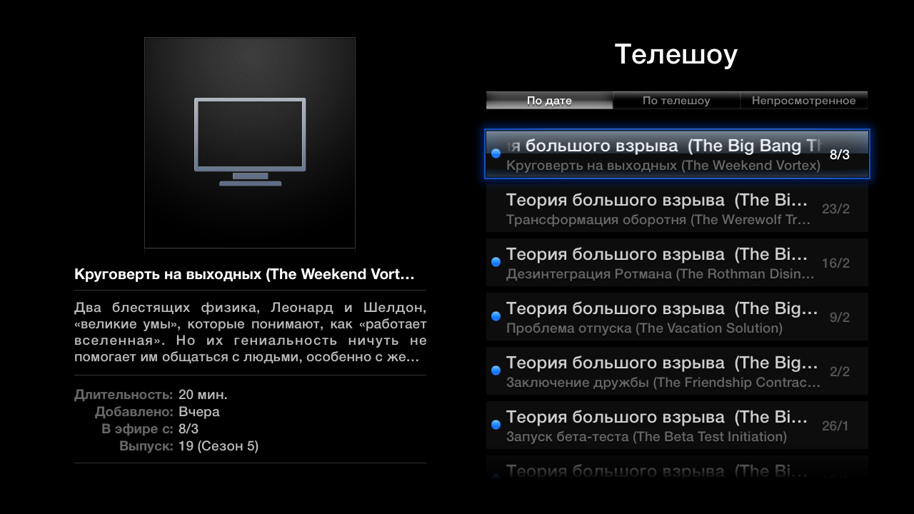 Другим странам повезло гораздо больше. Они могут использовать Apple TV для покупки и просмотра фильмов и телесериалов из огромной библиотеки iTunes. Что интересно — совсем не обязательно предварительно скачивать файлы для просмотра — работает режим онлайновой трансляции. Конечно, для видео высокого разрешения потребуется достаточно быстрый интернет-канал. Производитель говорит о 8 Мбит/с для 1080p, 6 Мбит/с для 720p и 2,5 Мбит/с для видео стандартного разрешения.