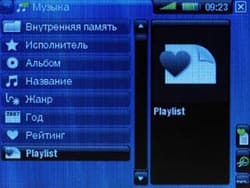 Войдя в меню Музыка главного меню плеера, мы сможем наблюдать ту самую библиотека мультимедиа ArcLib. Она состоит из семи категорий: Исполнитель, Альбом, Название, Жанр, Год, Рейтинг, Playlist. Естественно, в каждой из данных категорий музыка упорядочивается соответственно своему названию. Порой в некоторых плеерах разных производителей, где музыка каталогизируется встроенной библиотекой подобно рассмотренному выше, не хватает категорий. Здесь же их вполне достаточно для удобного поиска. Не нравится данный режим совсем — пожалуйста, есть режим файлового менеджера. Большинство моделей не могут похвастаться возможностью работы как с библиотекой, так и в «проводниковом» режиме, и за эту особенность плееру огромный «плюс» в копилку достоинств.