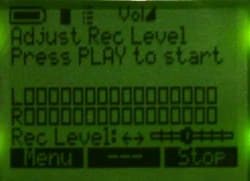 Начинается он с экрана, в котором вам предлагают выставить уровень записи. Можно контролировать процесс как визуально, на экране, так и через подключенные наушники. После выставления нужного значения уровня, можно приступать собственно к записи.