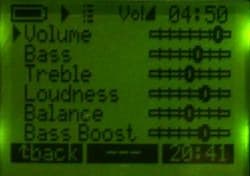 Меню управления плеером представляет собой список, по которому можно путешествовать вверх и вниз с помощью кнопок управления курсором. Для того, чтобы попасть в выбранный пункт меню, необходимо нажать клавишу Play, а для возврата к предыдущему состоянию надо нажать клавишу Off или одну из программируемых кнопок. Система меню у Archos Jukebox Recorder довольно стандартная. Большая часть пунктов относится к настройкам плеера, а оставшаяся часть к MР3-рекордеру и состоянию жесткого диска устройства. Из наиболее интересных пунктов стоит отметить работу с плейлистами и настройку эквалайзера.