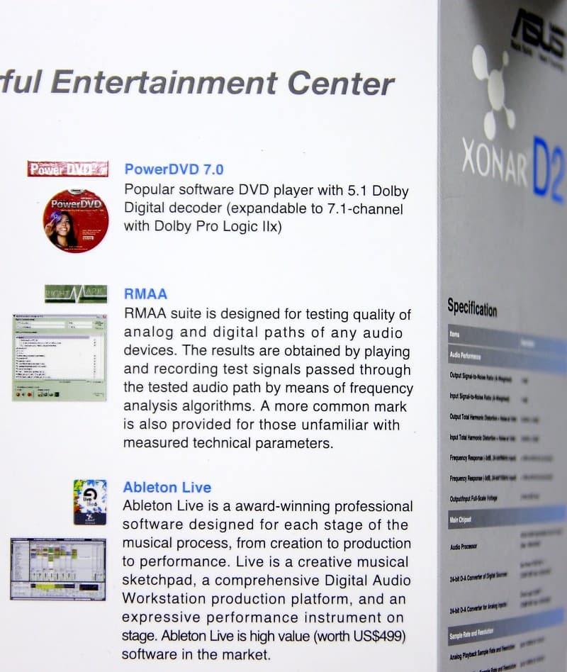 Карта ASUS Xonar D2 была создана при информационном сотрудничестве инженеров компании с командой разработчиков RMAA. На коробке с картой изображен скриншот программы RMAA 6, на диске с программами идет дистрибутив, плюс сотрудниками ASUS написана подробная инструкция по измерениям в RMAA и приведены типичные результаты, которые должны получиться.