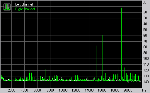 Тест интермодуляционных искажений (CCIF, синусоидальные тоны 19 кГц и 20 кГц, амплитуда -12 дБ).
