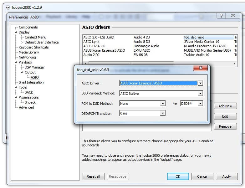 С Asus Essence III мы провели небольшой эксперимент: запустили два бесплатных плеера foobar2000 в портативной установке с включенным в одном из них пересчетом DSD→PCM, а в другом подавая DSD-сигнал напрямую на ЦАП. Одновременное воспроизведение двух этих разных форматов невозможно, но через кнопку «стоп» и небольшую задержку в 2 секунды такой опыт вполне можно провести.