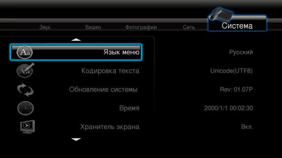 Первым делом проверяем версию прошивки, идем на сайт производителя и скачиваем новую версию. Устанавливается она с USB-накопителя с перезагрузкой плеера. Теперь у нас версия 1.7P («P» обозначает систему PAL).