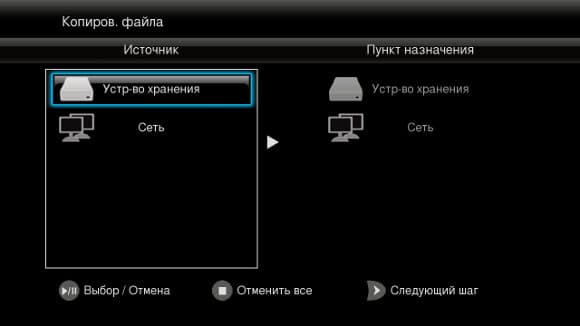 Собственно в текущей прошивке она одна — копирование или перенос файлов между различными источниками. Причем операция возможна сразу с несколькими отмеченными файлами. Записывать файлы можно как на сетевые источники, так и на локальные диски, в том числе и с файловой системой NTFS. При записи можно даже создавать новые директории с произвольными именами. Безусловно это полезное дополнение, особенно если есть сетевой накопитель.