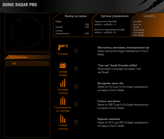 Пульт можно переключить в режим Raid, что позволяет управлять громкостью входа или выбранным в панели эффектом (например, уровнем баса). В качестве основного преимущества режима Raid называется возможность делать регулировку эффекта, не выходя из игры. Если вспомнить звуковые карты поколения X-Fi, то там для этого использовался беспроводной пульт с отдельными регуляторами.