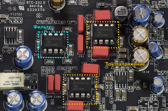 С ЦАП сразу используется выход по напряжению, и доступен всего один сменный ОУ LME49720NA в аналоговом фильтре.