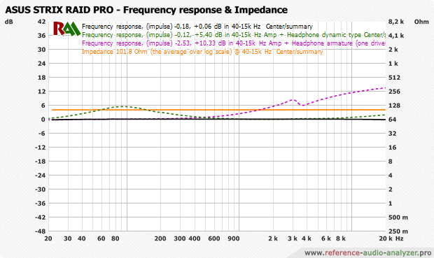 У наушников с высокой неравномерностью импеданса с Raid Pro будет наблюдаться более заметное изменение АЧХ. На графике показаны типовые отклонения для динамических и арматурных наушников.
