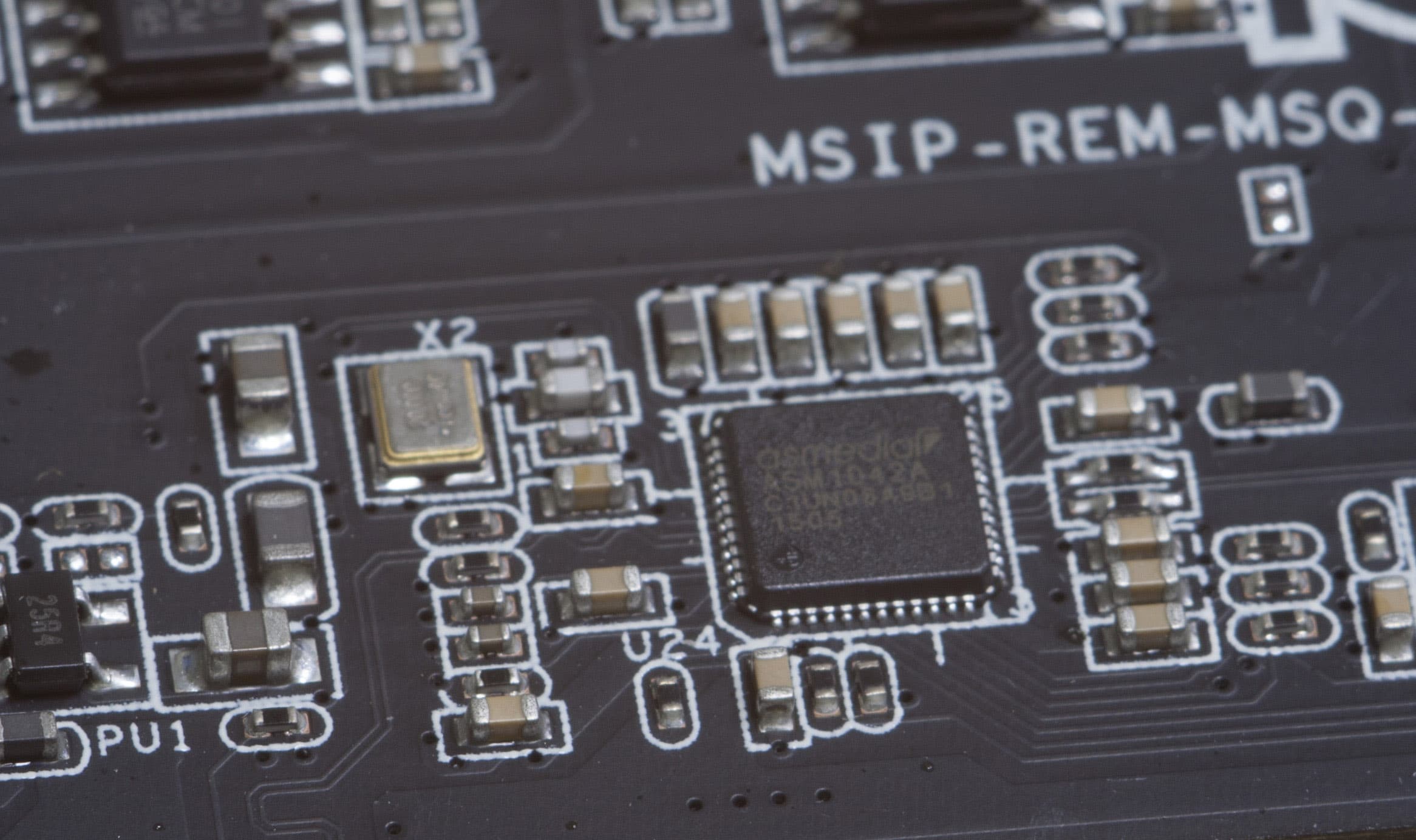 За связь с PCIe отвечает ASMedia ASM1042A (мостом PCIe—USB 3.0), к нему подключен чипсет для работы с USB — CM6632AX. Использование моста PCIe—USB дает некоторую надежду на выпуск USB-версий карт Strix с аналогичной аппаратной частью для владельцев ноутбуков.
