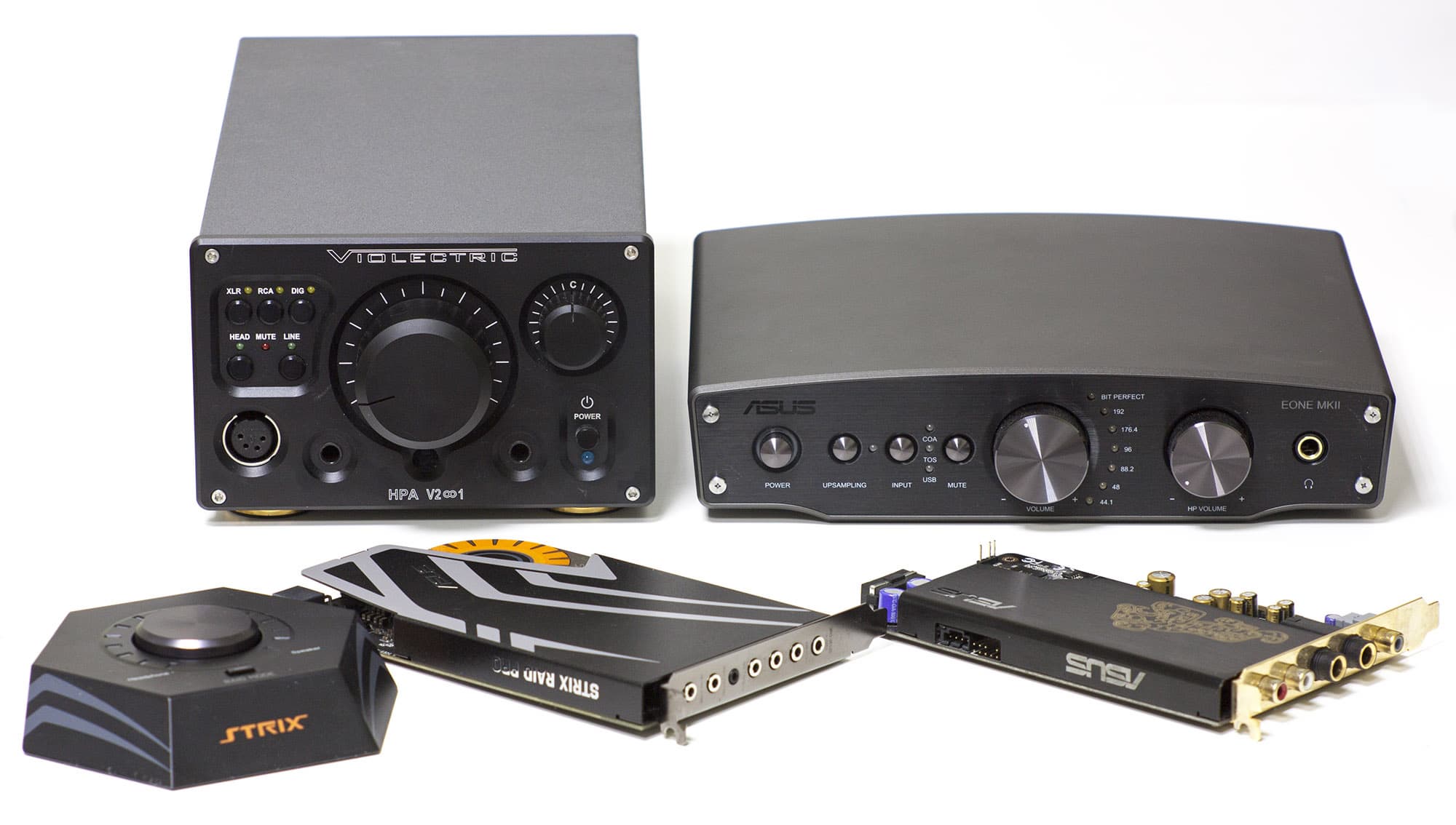 Для оценки потенциала усилителей для наушников было проведено прямое сравнение звучания с выхода для наушников и с Violectric V281, подключенного к линейным выходам устройств. Дополнительно было проведено сравнение с Asus Essence One MK2, чтобы получить ответ, одинаковыми ли удалось сделать усилители в Raid DLX и Essence One.