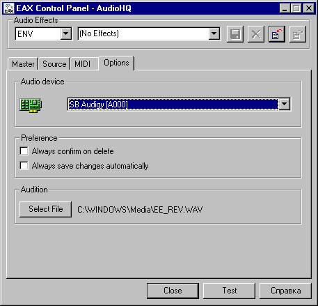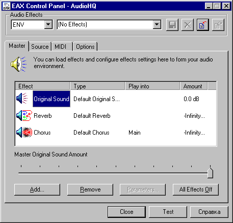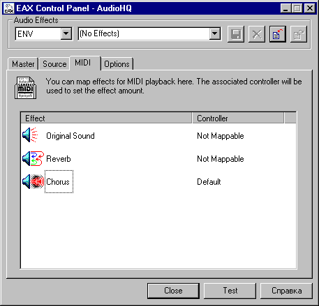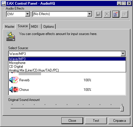 Могу сказать, что действительно, на карте Live!5.1 с универсальными WDM-драйверами всё выглядит и работает так, как будто в компьютере установлена звуковая карта Audigy: появляется поддержка ASIO, неограниченных банков SF2.X, а также всех новых эффектов и возможность назначать 4 эффекта за раз.