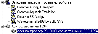 Трудно сказать, почему создатели карты назвали стандартный разъём именем SB1394. По крайней мере Windows видит встроенный в карту контроллер как стандартное устройство: