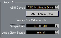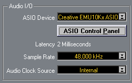 Однако на компьютере с Athlon 1333 МГц и 512 PC133 работа при 2 мс была невозможна на фоне треска от выпадения семплов. 4 мс спасли ситуацию при воспроизведении. Возможно при записи понадобится выставить все 10. Но всё это не так страшно, по сравнению с отсутствием режимов 44,1 кГц и 96 кГц.