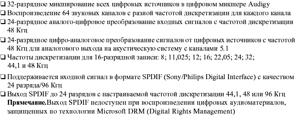 - мощный аудиопроцессор Creative Audigy, поддерживающий запись, воспроизведение и real-time обработку аудиоданных в любых форматах, вплоть до 24 бит 96 кГц (по этому поводу см. дополнение к статье чуть ниже);