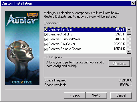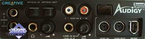 Так что же, Audigy выходит и не нужна? Немного не так. Во-первых, пока эти драйвера малость глюковаты и приложения изредка сваливаются в синий экран. Причём, по закону подлости это происходит в тот самый момент, когда хочешь засейвиться в игре или сохранить результат каких-то продвижений в секвенсоре. Во-вторых, остаются ещё и аппаратные различия между картами: 24 бит 96 кГц (типа круто, йо!), более качественные характеристики выходов (хоть на слух это и не отличимо) и, наконец, бонус в виде интегрированного IEEE1394 контроллера.