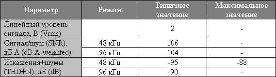 - цифро-аналоговые преобразователи 24 бит 96 кГц;