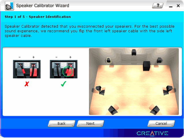 В драйверах отсутствует привычная THX панель, через которую удобно делать быструю калибровку АС, вместо нее работает пошаговая утилита Speaker Calibrator, действия которой направлены на калибровку каналов исключительно на слух.