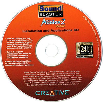 В начале продаж этой карты в розничных магазинах зачастую к Audigy2 Value был приложен диск от Audigy2 ZS, драйвера которого также не совместимы с Audigy2 Value. Отсутствие образа диска или минимального набора драйверов к карте на сайте производителя не добавило популярности продукту в начале продаж. При совершении покупки стоит внимательно проверять наличие красно-оранжевого диска с драйверами именно от Audigy2 Value. Выглядит он так.