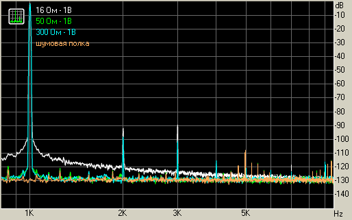 До 50 Ом мощность определялась только до уровня роста искажений, а на больших нагрузках регулятор громкости был в положении max, и в этом положении резкого роста искажений не наблюдалось.