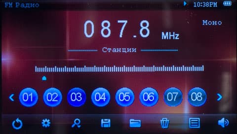 Ничего особо интересного в плане реализации этих функций плеер собой не представляет — все, как у других. Единственной интересной возможностью является, разве что, ручной ввод частоты при прослушивании радиотрансляций: иногда может оказаться полезным, особенно если автопоиск со своими обязанностями в данном месте справляется не лучшим образом. Запоминается до 32 радиостанций — не рекорд, но этого вполне хватит даже для крупных городов (тем более что многие плееры до сих пор оперируют со списком всего из 20 станций). Качество приема находится на том же уровне, что и у прочих сегодняшних плееров — без явных провалов, но и какими-то достижениями удивить пользователя никак не способно.