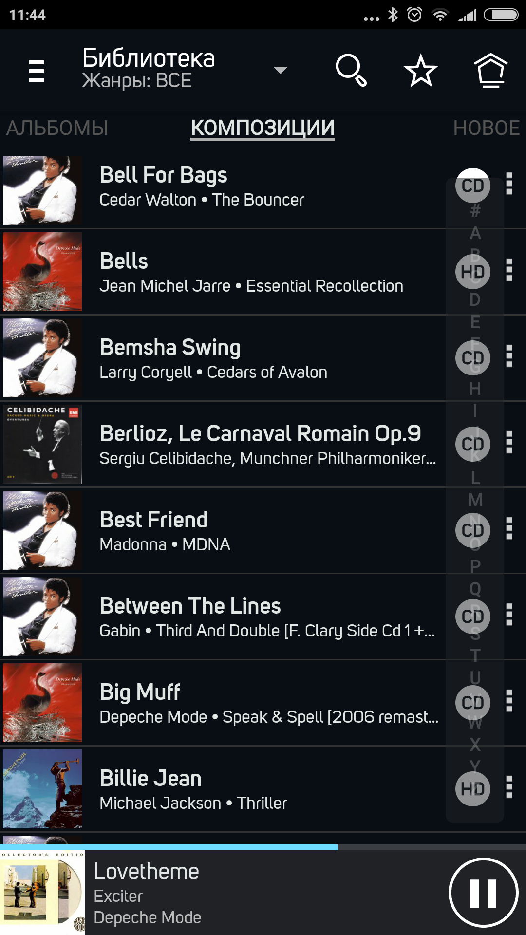 Окно плеера поддерживает альбомный вариант ориентации экрана мобильного устройства. Кроме управления громкостью и воспроизведением, здесь вы можете узнать информацию о треке с использованием сервиса last.fm и технические данные файла. Дополнительно его качество показывается логотипом — CD, HD или MQA.