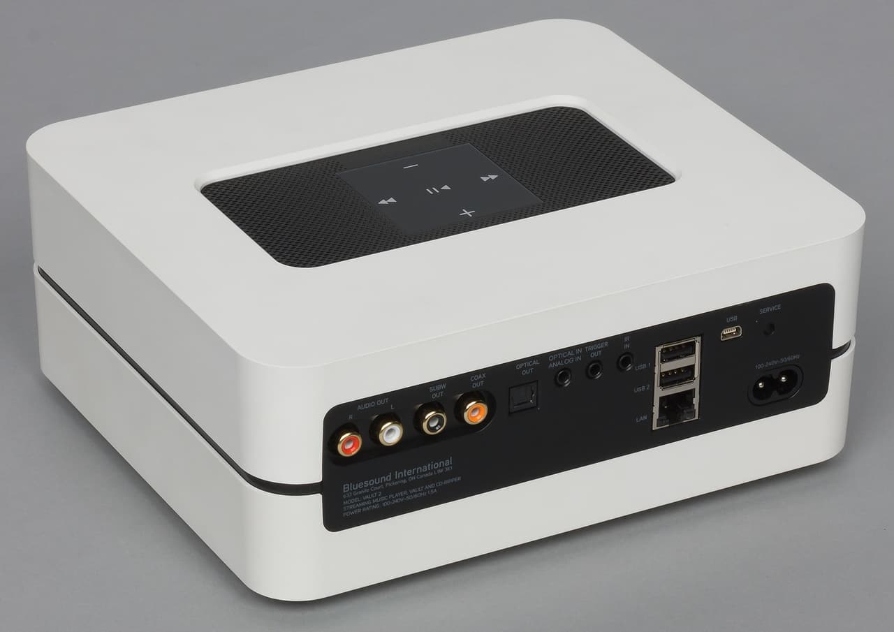 Для хранения медиафайлов установлен жесткий диск объемом 2 ТБ. Для переноса информации с компакт-дисков используется стандартный оптический привод. Учитывая, что в устройстве присутствует жесткий диск, отсутствие выключателя питания или хотя бы программной опции перехода в режим ожидания несколько удивило. Подключение устройства к сети осуществляется только через гигабитный сетевой порт. В этой модели также присутствует адаптер Bluetooth с поддержкой кодека aptX. Выделить какие-то особенные технические характеристики у данной модели сложно.