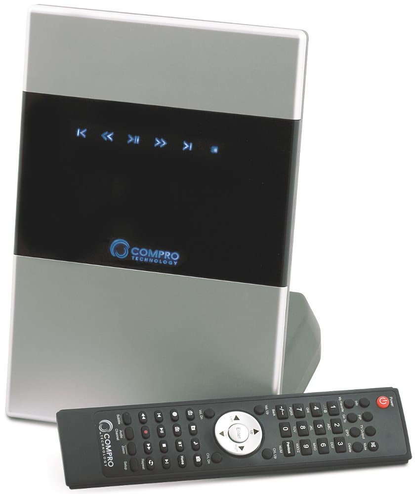 Так что появление свежих и оригинальных дизайнов сразу же привлекает внимание к устройству. Всего в линейке Compro VideoMate 1000 есть три модели — базовая (1000), с беспроводным контроллером (1000W), с беспроводным контроллером и тюнером DVB-T (T1000W). У нас на тестировании была последняя модификация, хотя конечно надо понимать, что широкого распространения эфирное цифровое телевидение у нас пока не получило.
