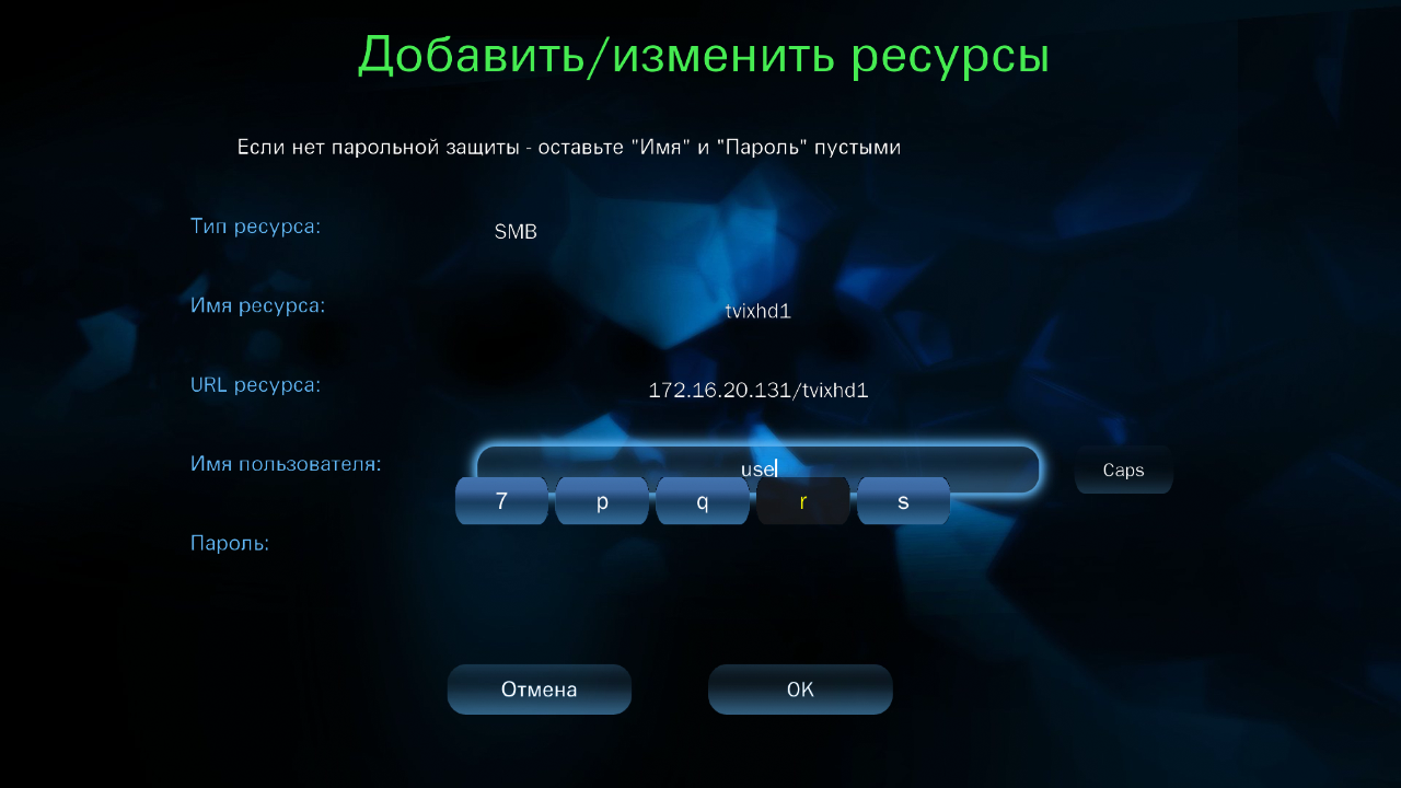 В пункте «сеть» скрываются не только указанные в настройках ресурсы, но и непосредственно браузер сети, так что в реальности совсем не обязательно настраивать их сразу. Правда такое решение вызывает заметные задержки — почти тридцать секунд перед открытием данного пункта. Если для доступа требуется указание имени и пароля, то плеер их запросит и запомнит.
