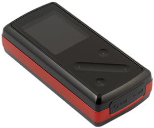 Плеер прямоугольной формы, с глянцевыми лицевой и задней частью, выполненными из пластмассы (собственно, как и весь плеер). У нас была модель черного цвета с красной полоской, проходящей по всем торцам. Существует также вариант с серебристой полоской. На верхнем торце расположен ползунок, осуществляющий включение/выключение устройства, либо включающий блокировку клавиш (в зависимости от направления передвижения ползунка). Рядом с ним находится софт-клавиша M, а также кнопки регулировки громкости.