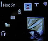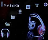 После включения плеера перед нами возникает анимационное меню, состоящее из семи пунктов: Музыка, Видео, FM-радио, Запись, Изображения, Текст и Настройки.