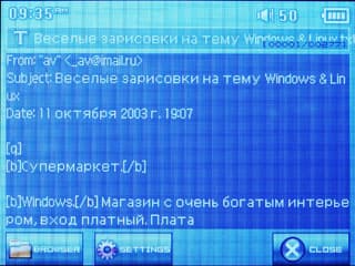 Как для чтения книг, так и, естественно, для обычных заметок эта функция очень полезна. Поддерживаются файлы только формата TXT. Удобно организован способ смены страницы — для этого либо стилусом, либо большими пальцами рук нужно прикасаться к правым и левым краям дисплея. Присутствует функция быстрого перехода к какой-либо странице. Для удобства также можно изменять цвет фона и шрифта — выбор производится только из предустановленных режимов, но и их достаточно. Нужно заметить, что шрифт отображается корректно и ровно, а перенос по словам отсутствует, то есть один конец слова висит на одной строке, другой — на другой. В принципе, к этому мы привыкли — практически все плееры, поддерживающие функцию отображения текстовых файлов, имеют эту особенность. Разумеется, как и с видео и аудио-файлами, никуда не пропала возможность делать закладки, чтобы потом вернуться к тому месту, на котором закончили читать.