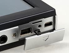 Остальное, как вы успели догадаться, возлагается на сенсорный дисплей. На правом торце, под скрывающей их пластмассовой заглушкой, находятся гнезда для mini-USB, EXT, а также отверстие Reset — для перезагрузки плеера в случае зависания. На нем и выход для наушников.