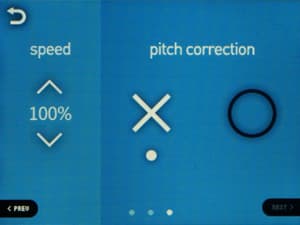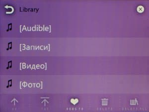 Списки теперь прокручиваются не нажатием на пиктограммы, а скользящим движением пальца — как во всех современных сенсорных устройствах. Но реализация прокрутки не идеальная: полосатый фон стоит на месте, движется только список, что иногда сбивает с толку. Чувствительность экрана и алгоритм скольжения списка тоже недостаточно хорошие. Длинные списки прокручивать не очень удобно, так как в экран влезает всего 4 строки с названиями песен.