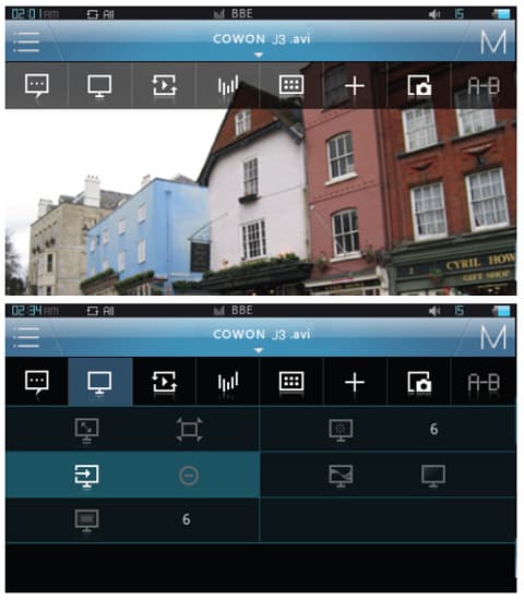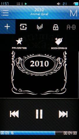 В плеере установлен AMOLED-дисплей. Это означает отличную контрастность, яркость картинки, какую редко увидишь среди обычных ЖК-дисплеев. Разрешение — 480×272 пикселя, соотношение сторон — 16:9. При диагонали в 3,3 дюйма это не рекордное разрешение, но все же его хватает. Да, пиксели видны, но картинка остается «живой». Углы обзора, как и у всех экранов типа AMOLED, максимальны по всем сторонам. На солнце читаемость информации неплохая при максимальной яркости. Жаль, что в плеер не установили датчик, с помощью которого подсветка регулировалась бы автоматически, как это происходит во многих телефонах. Но есть один виджет, который позволяет, не залезая в настройки, изменить яркость.