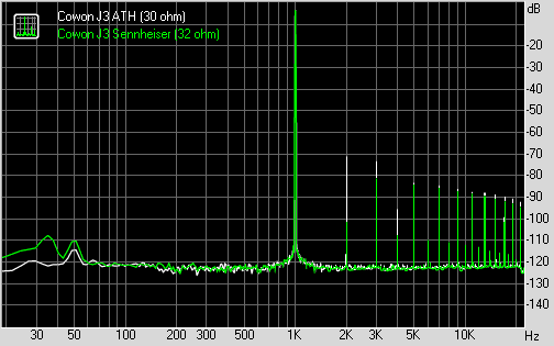 График искажений при подключении наушников ATH CK9 (30 Ом) и Sennheiser (32 Ом):