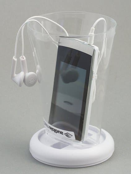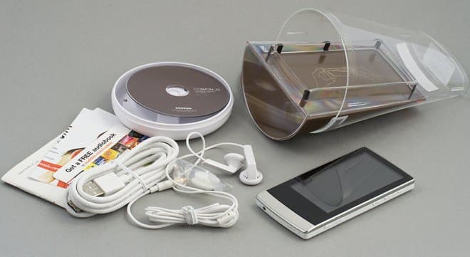 Итак, начнем с коробки. Она такая же, как у рассмотренной нами ранее модели iAudio 9, — прозрачный конус, накрученный на пластиковое дно. Если этот конус перевернуть и прикрутить к дну, получается эдакая подставка для карандашей или еще чего-нибудь. Нет, это не мои фантазии, это действительно такая задумка дизайнеров.